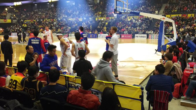珍しく四人でバスケを見ることになったんで指定取ったら、アウェイ側の一番端かいな。 #sendai89ers なお今日はイーグルスとのコラボユニ。 pic.twitter.com/N1Bsjr4B8H