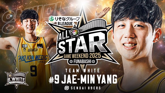 「りそなグループ B.LEAGUE ALL-STAR GAME WEEKEND 2025 IN FUNABASHI」🌟りそなグループ B.LEAGUE ALL-STAR GAMEに #ヤン・ジェミン 選手が選出されました🥳✨ヤン選手はB.WHITEで出場いたします!Bリーグ開幕以来、クラブ初の本戦出場です🤩🦁詳細はこちら89ers.jp/news/detail/id…#Bリーグ#Bリーグオールスター#りそなグループ#89ERS@JaeminYang27