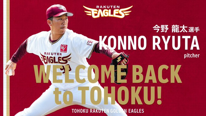 \WELCOME BACK to TOHOKU!/トレードにて、東京ヤクルトスワローズから #今野龍太 選手を獲得することに合意いたし ましたので、お知らせいたします。lnky.jp/cyUGPZ1#RakutenEagles #おかえりなさい pic.x.com/qErr7pZEh9