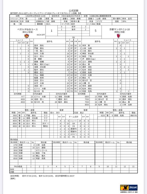 ベガルタ仙台ユース初のプレミア参入ならず…京都U―18に1―5で敗退hochi.news/articles/20241…