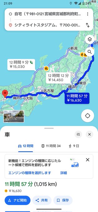 話のタネに、Googleナビしたら、やはり東名経由?か。 pic.x.com/hAF9KEq8r5 x.com/pegattakun/sta…