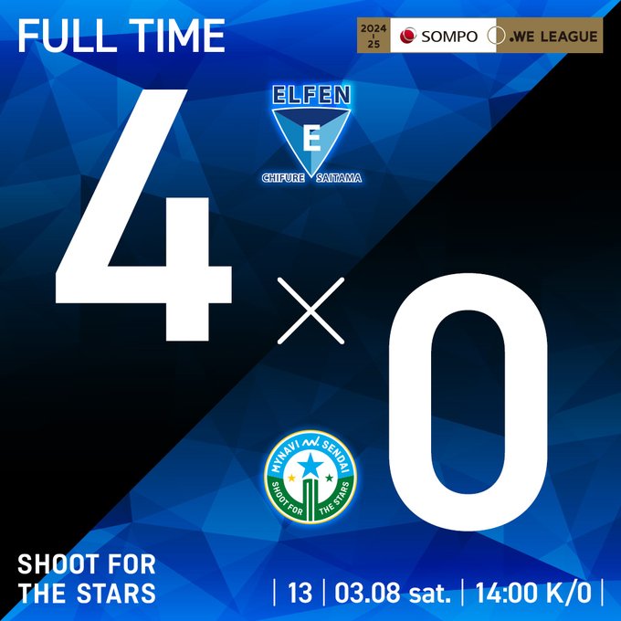 🔵2024-25 SOMPO WEリーグ 13 #EL埼玉🟢#試合終了 #EL埼玉 4-0 #マイナビ仙台 今節も沢山のご声援ありがとうございました。 #mynavisendai#マイナビ仙台レディース pic.x.com/jgTQLBnGYF