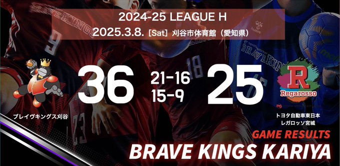 🔴🔵┈┈┈┈┈┈┈ 🆆🅸🅽 36ー25┈┈┈┈┈┈┈┈┈🔴🔵🆚#トヨタ自動車東日本レガロッソ宮城📍刈谷市体育館📺 japan-handball-league.moala.live#ブレイヴキングス刈谷#ハンドボール pic.x.com/UBh9qfJmUS