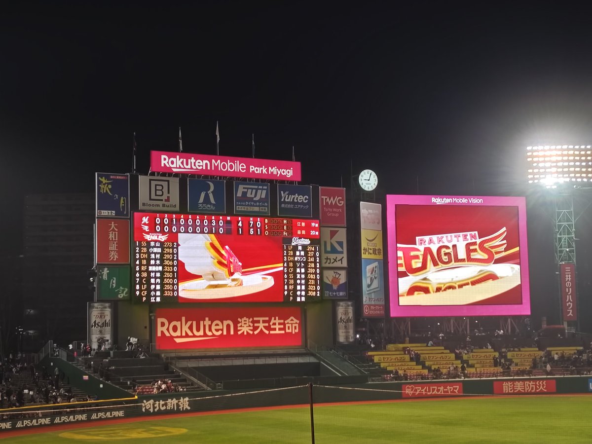 東北 1-4 千葉 22667人 試合終了 寺地…#rakuteneagles #ただ券ありがとう pic.x.com/80V9w4AJM4