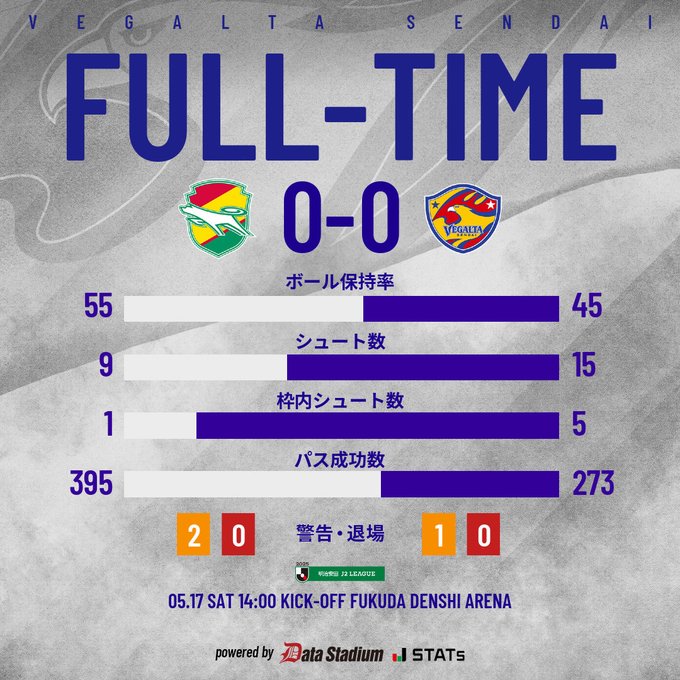🔔FULL-TIME🦅明治安田J2 第16節ジェフユナイテッド千葉 0🆚0 ベガルタ仙台💻 @DAZN_JPN [prf.hn/l/KLDGZ5d]#VEGALTA #PASSION_限界を超えろ #16千葉 pic.x.com/lXHwEoDVsx