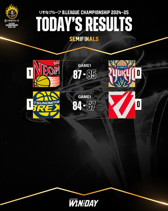 【B1】TODAY'S RESULTS🏆りそなグループ B.LEAGUE CHAMPIONSHIP 2024-25🔥SEMIFINALS〈GAME1〉※2戦先勝方式📡バスケットLIVEで見逃し視聴basketball.mb.softbank.jp/service/?utm_s… #Bリーグ #りそなグループ#Bリーグチャンピオンシップ pic.x.com/J1lZniPgeZ