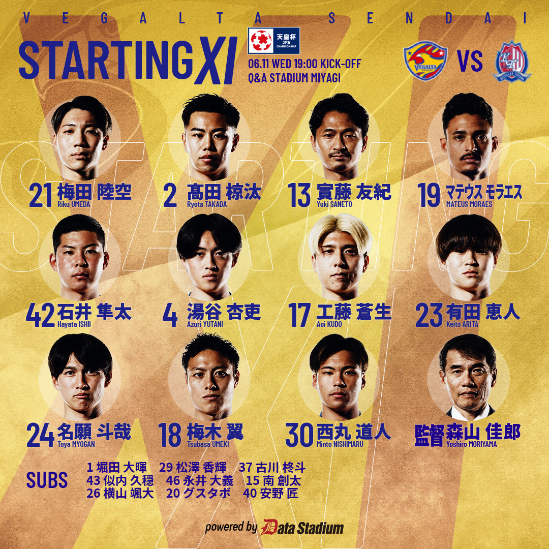 📋STARTING XI🦅天皇杯 2回戦🆚カターレ富山GK #梅田陸空DF #髙田椋汰 #實藤友紀 #マテウスモラエス #石井隼太MF #湯谷杏吏 #工藤蒼生 #有田恵人 #名願斗哉FW #梅木翼 #西丸道人 pic.x.com/BghDiRyOoL