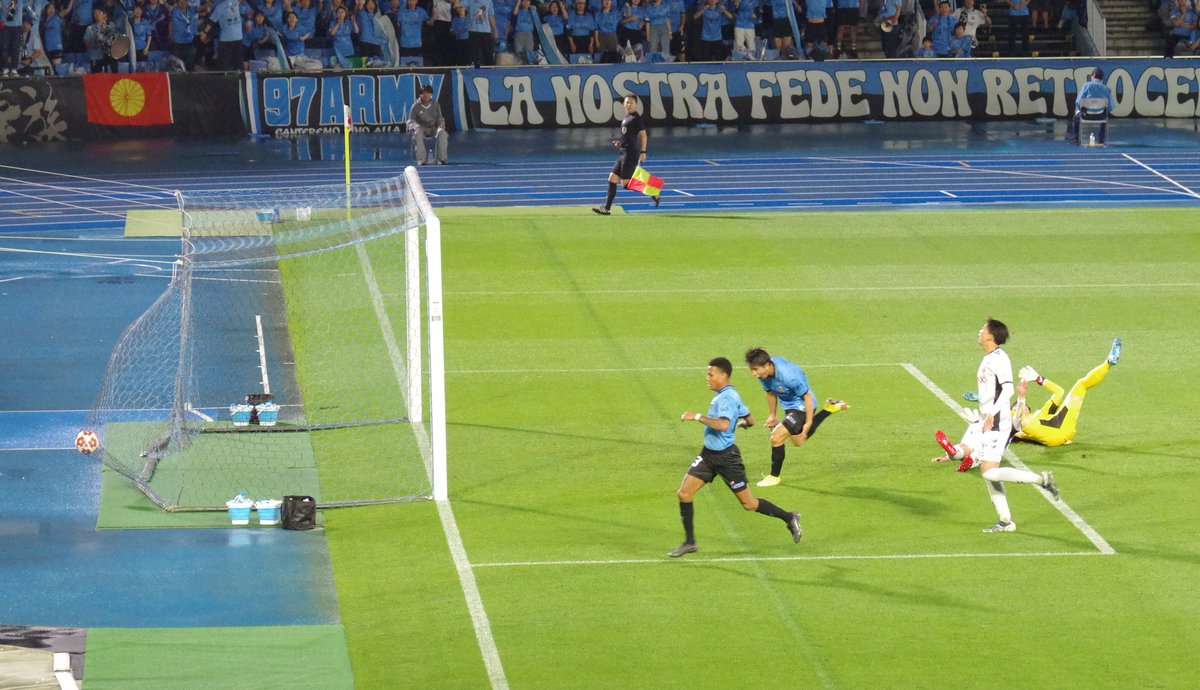 前半29分、川崎同点。福島ゴール前からのパスを川崎がインターセプトし、山田新につながりゴール。川崎 1-1 福島。 pic.x.com/Wh294vWAvp