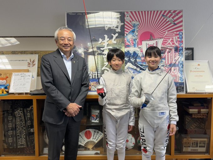 アジアカデフェンシングチャレンジ2025(香港🇭🇰)に日本代表として出場する佐藤芽依 選手 サーブル金野新 選手 フルーレが関係者と共に市長に表敬訪問いたしました日の丸🇯🇵を背負って 香港🇭🇰でも頑張れ👍#フェンシング #香港 #気仙沼 pic.x.com/OFrZRdF7Pl