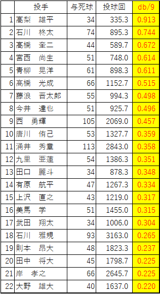 藤浪の与死球率(9イニングでの死球数)を計算してみたこの20人は現役で通算与死球のトップ20多いっちゃ多いが、数だけなら別にそれほどでもないんやね pic.x.com/K7hc27NPvZ