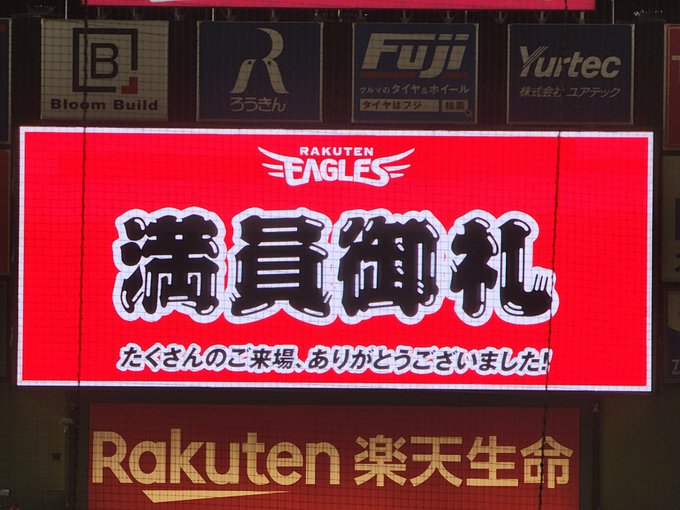 東北 6-8 オリックス 25503人 満員御礼 試合終了 はい皆様お疲れ様でした。 #rakuteneagles