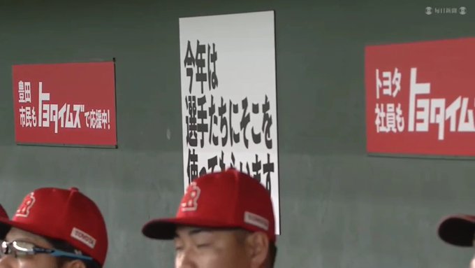 トヨタ側ベンチに『今回も 外野フェンスに 文章を出せます』『今年は 選手たちに そこを使ってもらいます』『感謝したい相手に 気持ちを 伝えてください 豊田章男』#都市対抗野球 pic.x.com/swCrIaTdoY