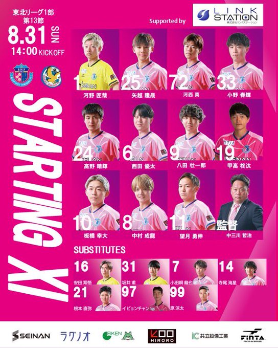 🔥スターティングメンバー発表🔥2025東北1部 第13節🆚仙台SASUKE.FC⏰14:00キックオフ🏟色麻町愛宕山公園サッカー場#ブランデュー#前へ #心ひとつに pic.x.com/HZjABilPow
