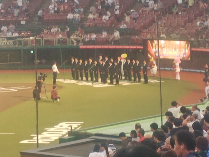 国歌斉唱。東北大学男声合唱団!#rakuteneagles pic.x.com/KlDWlbImAe