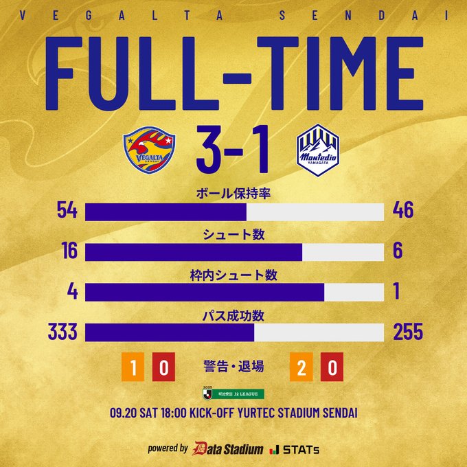 🔔FULL-TIME🦅明治安田J2 第30節ベガルタ仙台 3🆚1 モンテディオ山形💻 @DAZN_JPN [prf.hn/l/KLDGZ5d]#VEGALTA #PASSION_限界を超えろ #30山形 pic.x.com/jotAhFjJQq