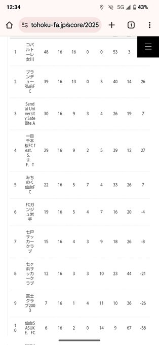 東北社会人サッカーリーグ一部残り二試合9位の富士クラブ10位の仙台SASUKE降格崖っぷちか#コミュサカ pic.x.com/S7tgTkt7IO