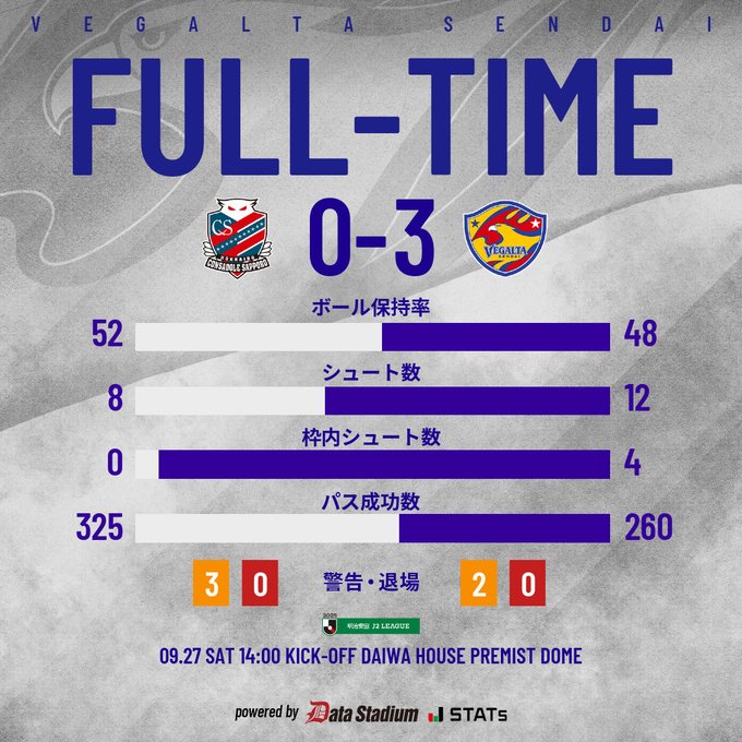 🔔FULL-TIME🦅明治安田J2 第31節北海道コンサドーレ札幌 0🆚3 ベガルタ仙台💻 @DAZN_JPN [prf.hn/l/KLDGZ5d]#VEGALTA #PASSION_限界を超えろ #31札幌 pic.x.com/oK1InIlgAU