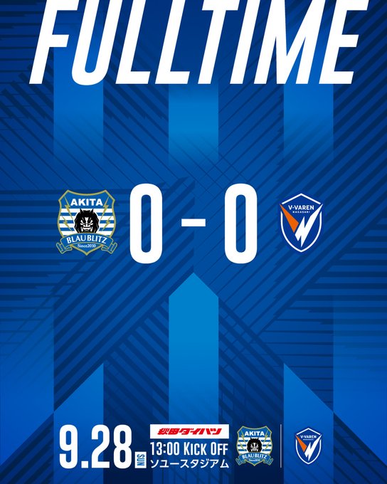 🔹𝗙𝗨𝗟𝗟 𝗧𝗜𝗠𝗘🔹2025明治安田J2リーグ 第31節#ブラウブリッツ秋田 0-0 #V・ファーレン長崎後半も長崎がボールを握る展開。何度も押し込まれるも秋田らしい堅く粘り強い守備でチャンスの芽を摘み、失点を許さず。引き分けとなりました。本日も熱い応援ありがとうございました。#Jリーグ #秋田一体魂