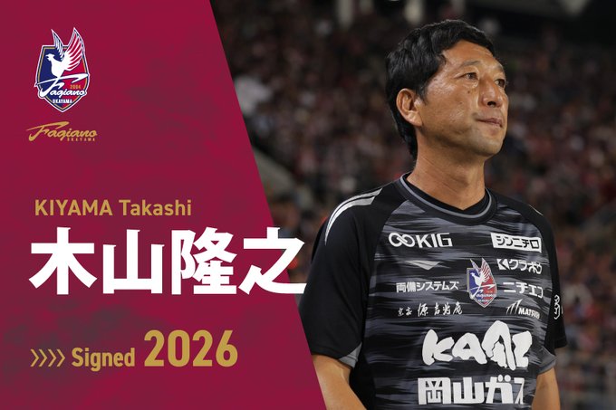 【木山隆之監督 契約更新のお知らせ】このたび、木山隆之監督と契約を更新することで合意し、明治安田J1百年構想リーグ及び2026/27シーズンも引き続きトップチームの指揮を執ることが決まりましたので、お知らせいたします。fagiano-okayama.com/news/202512090…#木山隆之 #ファジアーノ岡山 pic.x.com/KnWXB3x7PU