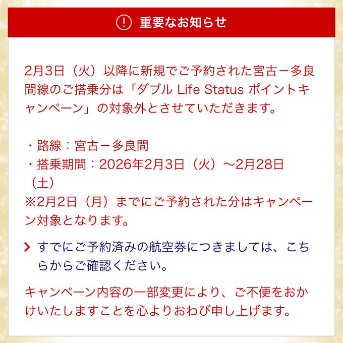 JAL宮古-多良間✈︎LSP2倍キャンペーン対象外へ❗️jal.co.jp/jp/ja/121campa… pic.x.com/oxjssYeUEJ