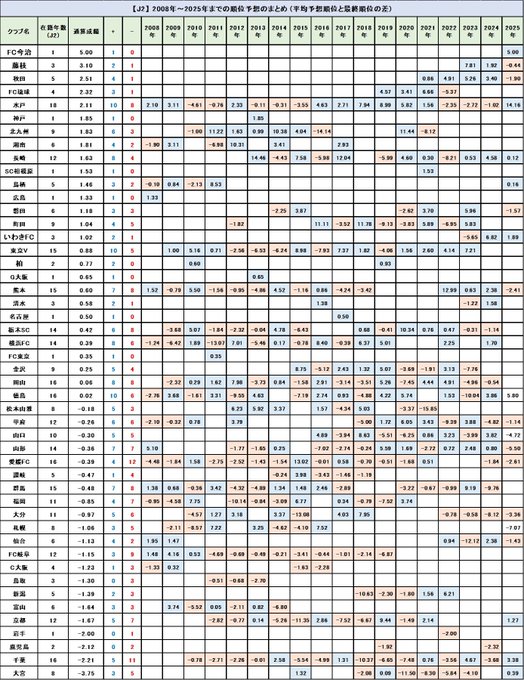 【2026年(EAST-A(J2・J3))|順位予想(39名分)|湘南/仙台/横浜FC/栃木C/山形/秋田/群馬/栃木SC/八戸/SC相模原】Jリーグ開幕まであと3日!募集中の順位予想の途中経過をまとめました!※順位予想の投稿はこちらから→ form1ssl.fc2.com/form/?id=85513…・湘南が優勝候補の筆頭。平均予想順位は2.38位・対抗馬は仙台ならびに横浜FC・「湘南と仙台と横浜FCの3強」という構図・上位3クラブは1位〜3位予想が集中・栃木Cと山形が第2集団を形成・昇格1年目の栃木Cは4番手評価・秋田は6位予想が約半分の18名・群馬/栃木SC/八戸が第4集団・SC相模原は39名中21名が10位と予想・注目クラブ:1位は栃木C、2位は仙台・注目選手:1位はMF田中パウロ淳一・ブレイク予想:1位はMF小竹知恩・栃木Cが現時点では3部門とも1位に!■ 順位予想・途中経過(サポーターの声)1番手:湘南ベルマーレ(平均予想順位:2.38位/1位予想:11名)・戦力はこの中で頭ひとつ抜けているという声・主力流出はあったがそれでも総合力は高い・石橋など若手に期待する声が多い・スタートダッシュを決められれば一気に抜ける可能性2番手:ベガルタ仙台(平均予想順位:2.67位/1位予想:9名)・戦力、クラブ規模、サポーター力が高い・主力流出はあったが、穴埋め補強は一定の評価・「優勝争いに絡まない方が不思議」という声・郷家や真瀬などの流出は痛いという見方も3番手:横浜FC(平均予想順位:3.00位/1位予想:5名)・選手層の厚さはこの組でトップクラス・須藤新監督の手腕に期待する声が多い・主力の入れ替わりが多く、噛み合うかどうか・上位争いは濃厚だが、苦戦する可能性も4番手:栃木シティ(平均予想順位:4.36位/1位予想:7名)・今オフの補強のインパクトはリーグ随一・「勢いがそのまま通用するか」を見る声が多い・戦力は揃っているが、J2でどの程度通用するか?・ハマれば台風の目、崩れれば中位止まりという評価5番手:モンテディオ山形(平均予想順位:4.64位/1位予想:3名)・戦力的には上位候補と遜色ないという評価・シーズン序盤の不安定さを懸念する声が目立つ・「J1に近いクラブ」という評価は依然として高い・安定して勝ち点を積めるかがカギ6番手:ブラウブリッツ秋田(平均予想順位:6.05位/1位予想:1名)・堅実さと組織力が評価されている・上位食いの可能性はあるが、爆発力に欠ける・スタジアム問題などクラブ外要因を懸念する声も・吉田謙監督の手腕に期待する人が多い7番手:ザスパ群馬(平均予想順位:7.44位/1位予想:3名)・昨シーズン終盤の6連勝を評価する声が多い・攻撃力は魅力だが、安定感に欠ける・上にも下にも振れそうな「読みにくい存在」・「ハマれば中位以上も」という評価8番手:栃木SC(平均予想順位:7.51位/1位予想:0名)・若手中心のチーム構成に期待と不安が混在・守備面の課題を指摘する声が多い・「このリーグを成長の場にする?」という見方も・MF五十嵐太陽の残留は大きいという声9番手:ヴァンラーレ八戸(平均予想順位:7.79位/1位予想:0名)・J2昇格組として厳しい戦いを予想する声が多数・得点力と層の薄さが懸念材料・勢いをどこまで保てるかがポイント・下位予想は多いが、粘り強さには一定の評価10番手:SC相模原(平均予想順位:9.15位/1位予想:0名)・選手層の薄さ、保有選手数の少なさを不安視する声・上位クラブとの力の差を指摘する意見が多い・育成ならびに長期視点のチーム作り?という見方・順位的には厳しい予想が大半――――― 【告知】順位予想バトル(2026年版)受付中 ※受付期間:2026年1月17日(土)~2月5日(木) ※匿名OK/所要時間3分 ■ J1 EAST編 鹿島/水戸/浦和/千葉/柏/FC東京/東京V/町田/川崎F/横浜FM → form1ssl.fc2.com/form/?id=d891d… ■ J1 WEST編 清水/名古屋/京都/G大阪/C大阪/神戸/岡山/広島/福岡/長崎 → form1ssl.fc2.com/form/?id=1d062… ■ J2・J3 EAST-A編 八戸/仙台/秋田/山形/栃木SC/栃木C/群馬/横浜FC/湘南/相模原 → form1ssl.fc2.com/form/?id=85513… ■ J2・J3 EAST-B編 札幌/福島/いわき/大宮/甲府/松本山雅/長野/藤枝/FC岐阜 → form1ssl.fc2.com/form/?id=c7129… ■ J2・J3 WEST-A編 新潟/富山/金沢/FC大阪/奈良/讃岐/徳島/愛媛FC/FC今治/高知 → form1ssl.fc2.com/form/?id=cc40d… ■ J2・J3 WEST-B編 滋賀/鳥取/山口/北九州/鳥栖/熊本/大分/宮崎/鹿児島/FC琉球 → form1ssl.fc2.com/form/?id=9d737… ――――― ▼ 各カテゴリの順位予想・途中経過はこちら ・EAST(J1)(71名) llabtooflatot.blog.fc2.com/blog-entry-155… ・WEST(J1)(33名) llabtooflatot.blog.fc2.com/blog-entry-155… ・EAST-A(J2・J3)(38名) llabtooflatot.blog.fc2.com/blog-entry-155… ・EAST-B(J2・J3)(33名) llabtooflatot.blog.fc2.com/blog-entry-155… ・WEST-A(J2・J3)(42名) llabtooflatot.blog.fc2.com/blog-entry-155… ・WEST-B(J2・J3)(50名) llabtooflatot.blog.fc2.com/blog-entry-155…