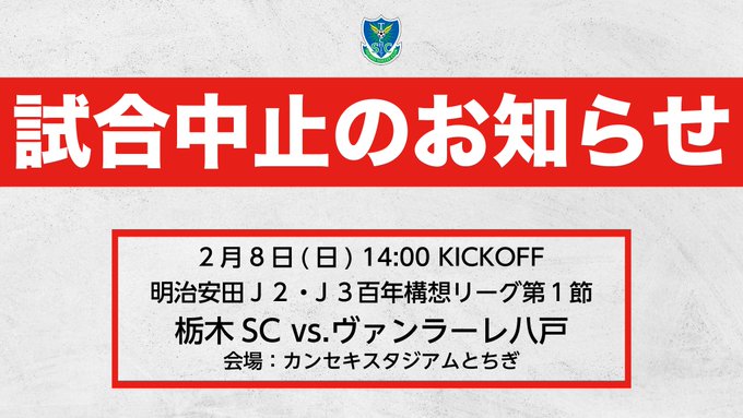 ⚠️重要⚠️明治安田J2・J3百年構想リーグ地域リーグラウンド 第1節「栃木SCvs. ヴァンラーレ八戸」試合中止のお知らせ ̄ ̄ ̄ ̄ ̄ ̄ ̄ ̄ ̄ ̄ ̄ ̄▼詳細はこちらtochigisc.jp/news/1487#栃木SC pic.x.com/ScoHBKnf6t x.com/tochigisc/stat…