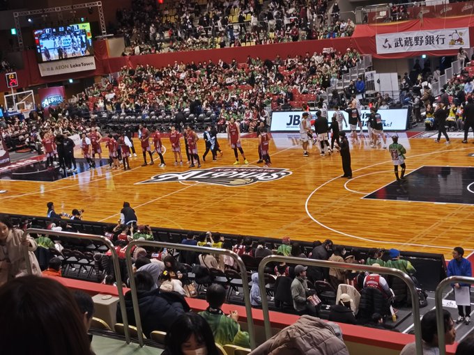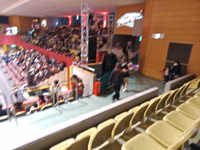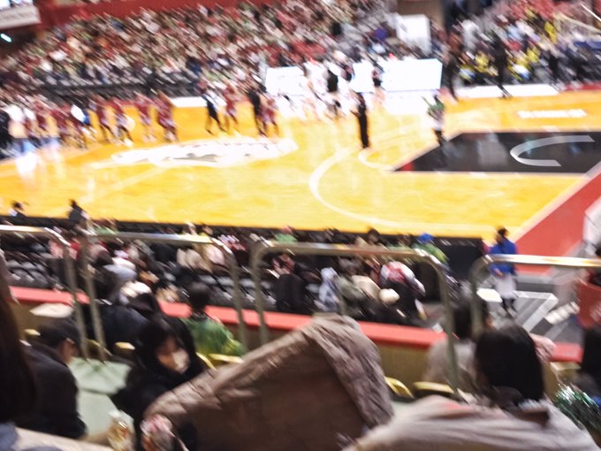 鹿児島ユナイテッド行こうかと思ってたけどあまりに寒いのでバスケに切り替え選挙割で当日券半額のはずがチームスタッフの手違いで前売りの半額になってしまう嬉しいハプニング2階自由席に布陣したら周りから芋焼酎の香りこれぞかごんますなぁw#鹿児島レブナイズ#熊本ヴォルターズ#B2九州ダービー#冬はインドアに限る