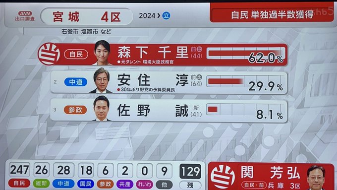 マジ!!【速報】衆院選・宮城 自民党候補が全ての小選挙区で当選確実(仙台放送)#Yahooニュースnews.yahoo.co.jp/articles/0bedf…