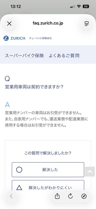《緊急速報》チューリッヒのバイク保険、配送業務では使用できない事を6年目の契約になって知る… pic.x.com/MOypIxK1uw x.com/unmax125/statu…